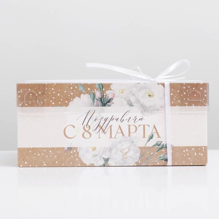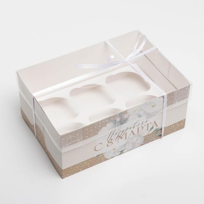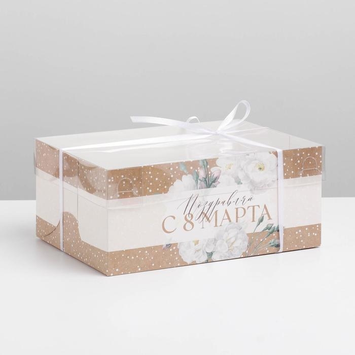 Коробка для капкейков, кондитерская упаковка с PVC крышкой, 6 ячеек «Цветы», 8 марта, 23 х 16 х 10 см