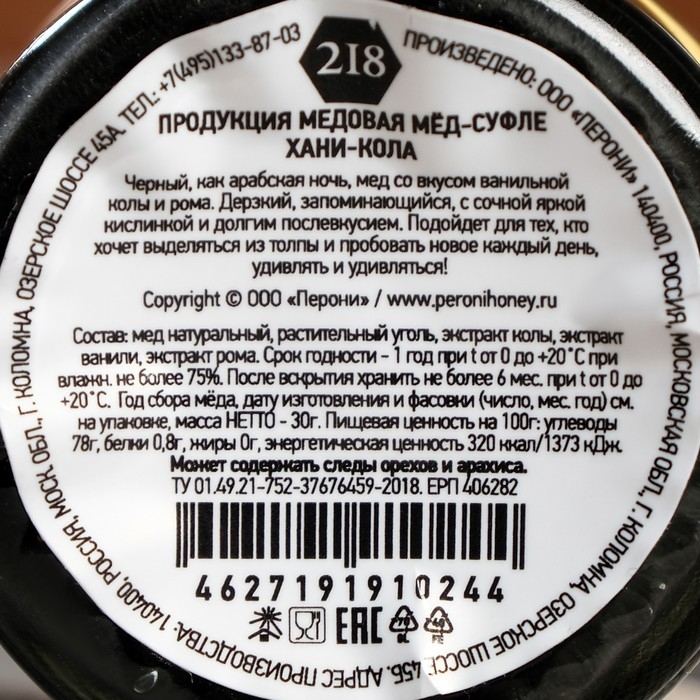 Мёд-суфле Peroni, Хани-Кола, 30 г