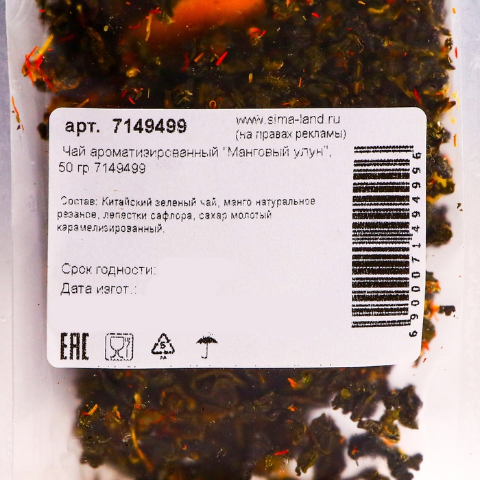 Состав:Китайский зеленый чай, манго натуральное резаное, лепестки сафлора, сахар молотый карамелизированный, натуральные масла и ароматизаторы, идентичные натуральным.