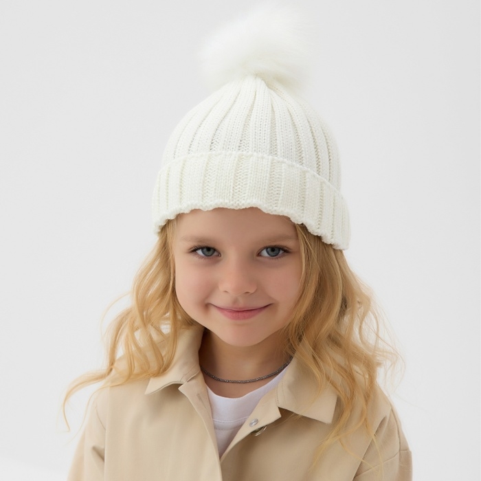Шапка для девочки MINAKU "Блестящая", р-р 50-52, цв. экрю