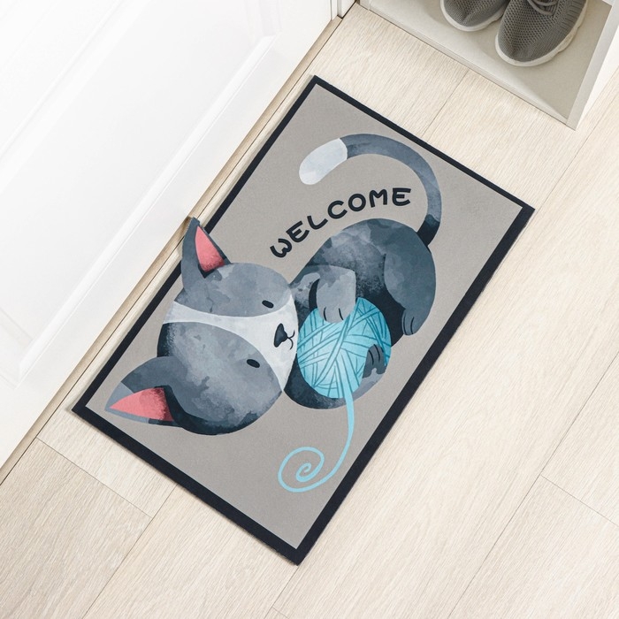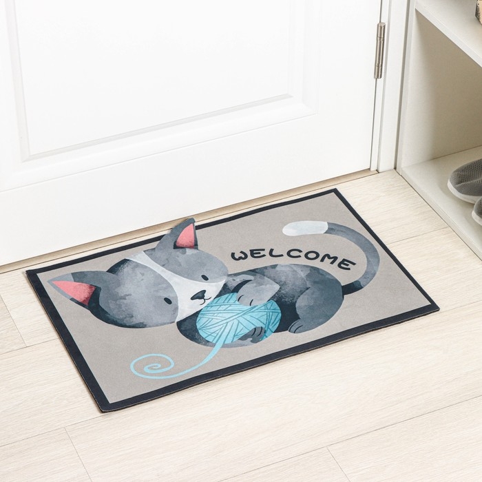Коврик влаговпитывающий придверный Доляна «Котёнок», без окантовки, 39×59 см