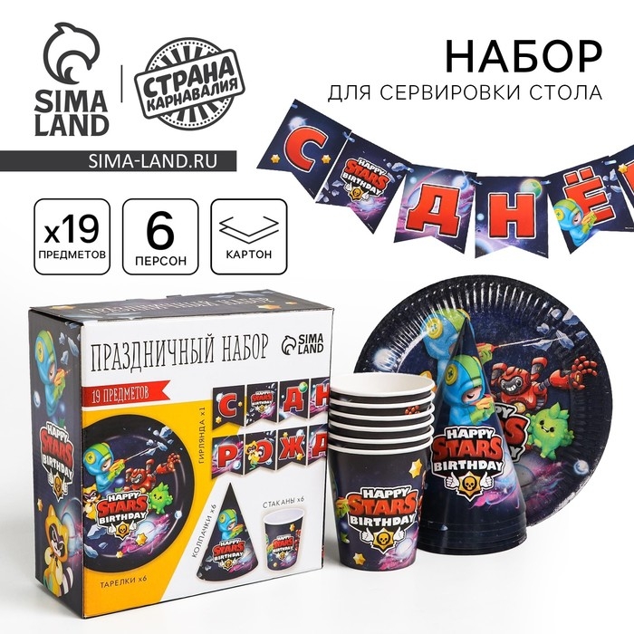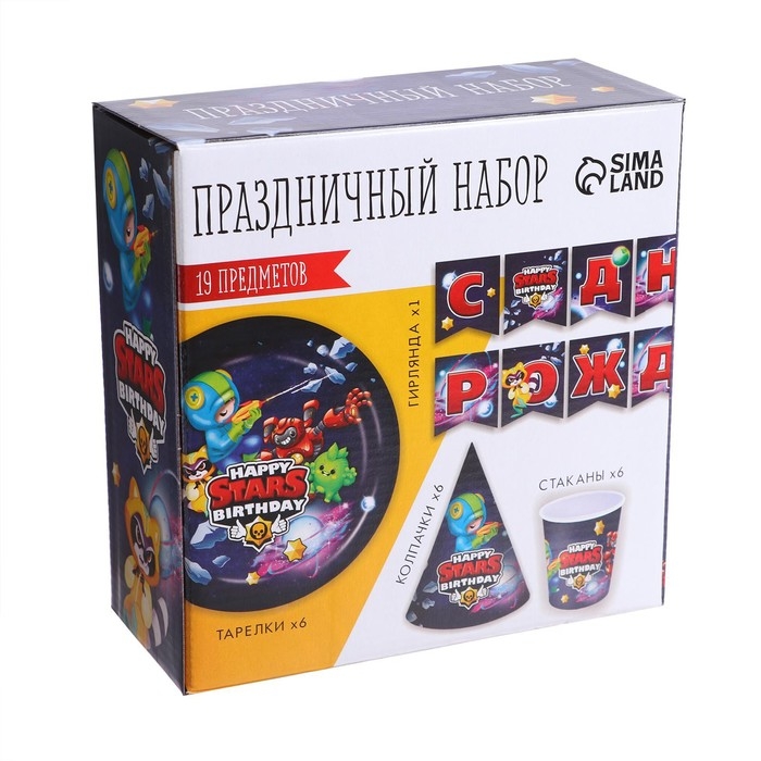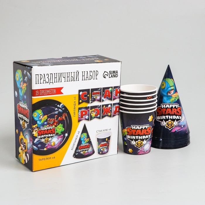 Набор бумажной посуды одноразовый С Днём рождения», stars