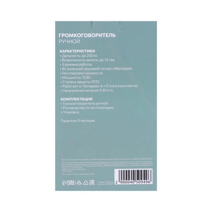 Мегафон ручной Rad-01, 15 Вт, дальность до 200 м, запись 10 сек, 3 режима белый станет важной деталью при построении одной этих из составляющих и предоставит широкий выбор решений при оборудовании интегрированных систем.