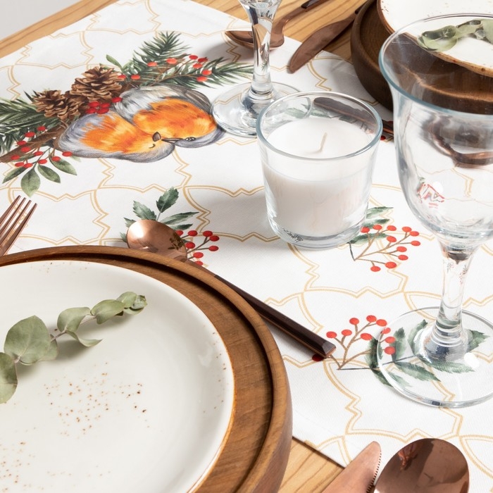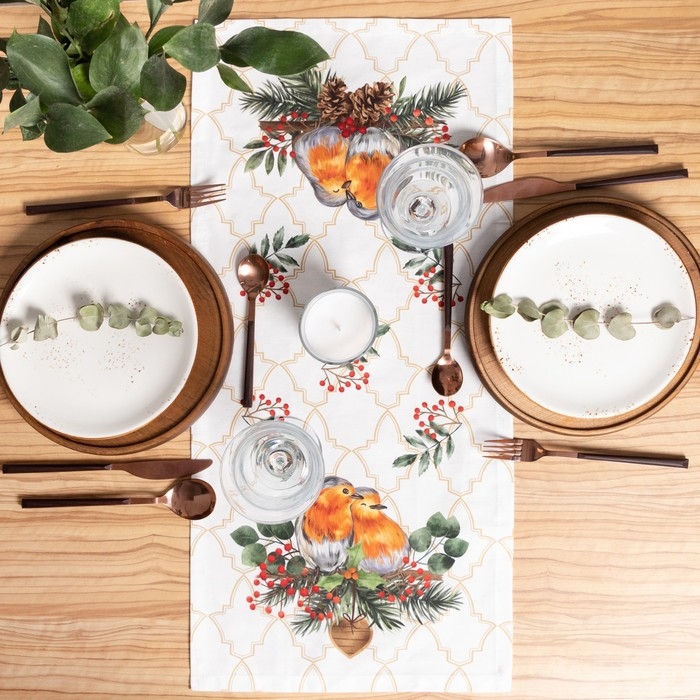 Новый год. Дорожка на стол новогодняя Этель Robin 30х70 +/- 5 см, 100% хл, саржа 190 гр/м2