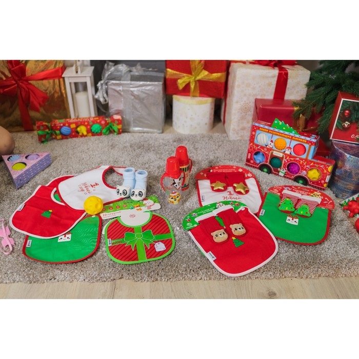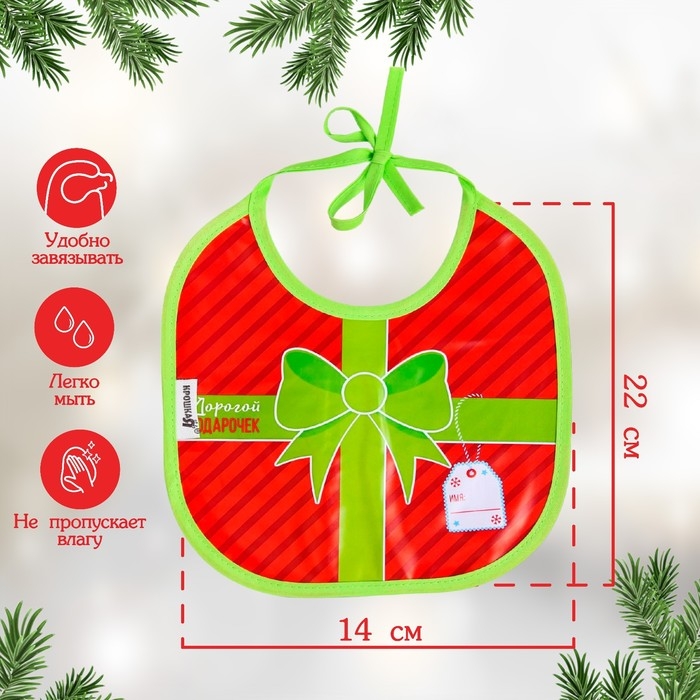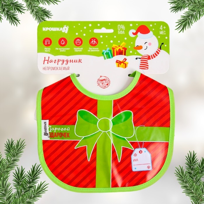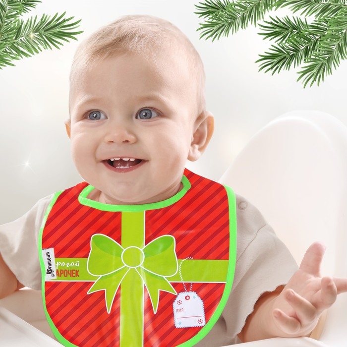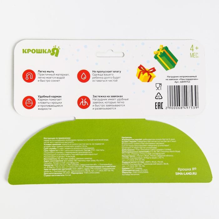 Нагрудник «Наш подарочек» непромокаемый на завязках, ПВХ, новогодняя подарочная упаковка, Крошка Я