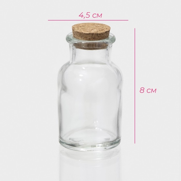 Банка стеклянная для хранения сыпучих продуктов Доляна «Парфе», 70 мл, 4,5×8 см, с пробковой крышкой