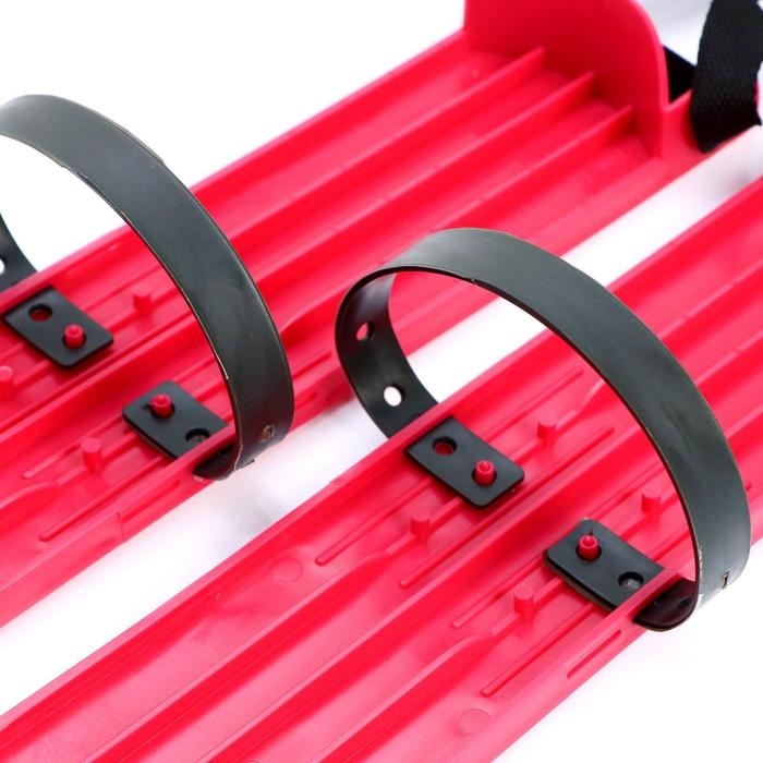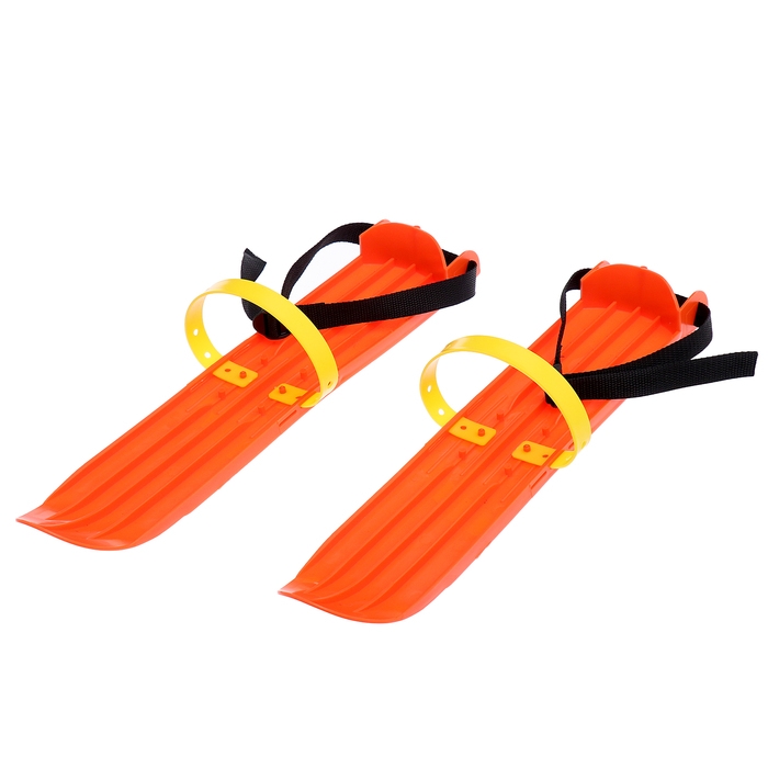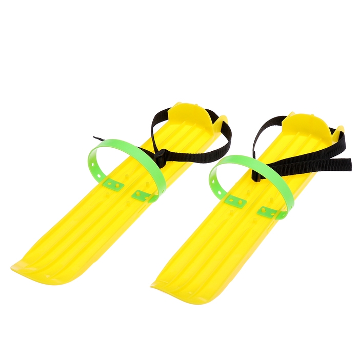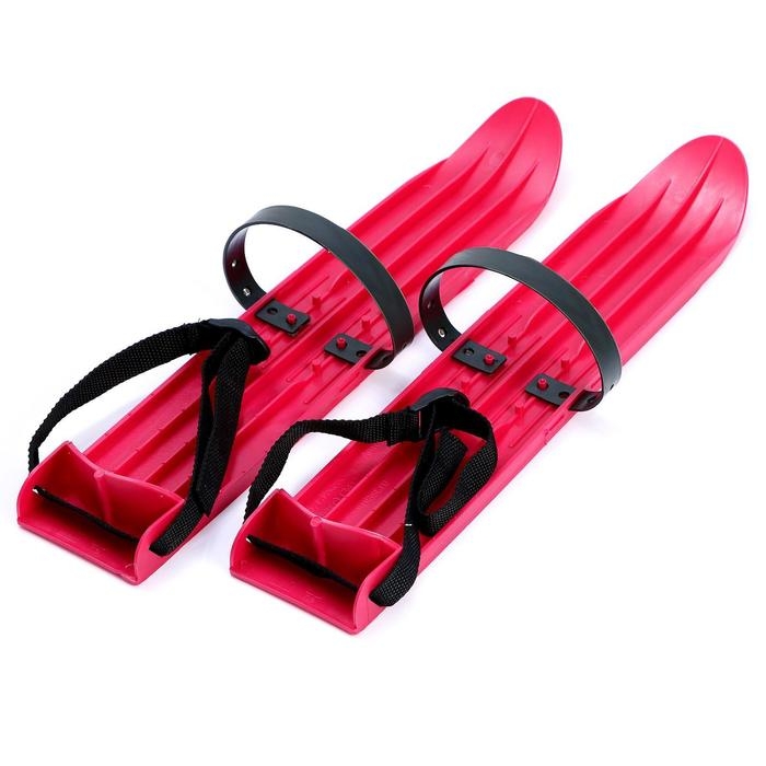 Мини лыжи детские с ремешками, длина 44,5 см, ширина 8,5 см. В комплекте 2 регулируемых ремешка (пластиковый и текстильный) для фиксации ступни и пятки.