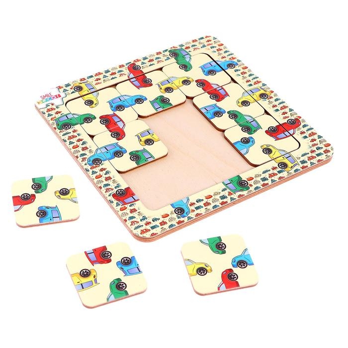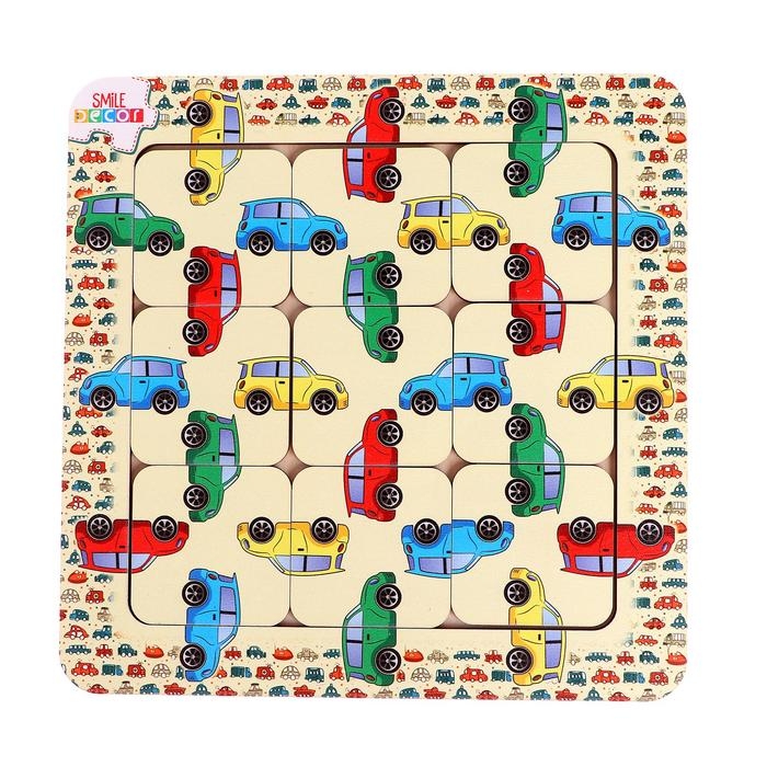 - Игра «Автослесарь»: предложите малышу собрать машинки, вставив квадраты обратно в рамку так, чтобы половинки машинок соответствовали друг другу по цвету.
