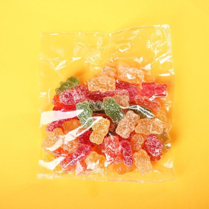 Состав: глюкозный сироп, сахар, агент желирующий – желатин, регулятор кислотности – лимонная кислота (Е330), ароматизаторы: «Яблоко», «Груша», «Ананас», «Клубника», «Барбарис», «Вишня», «Дыня», «Малина», «Ежевика», «Лесная ягода», «Тутти-фрутти», «Лимон», «Апельсин», «Персик», «Банан», «Черная смородина», «Земляника», «Манго», «Клюква», красители пищевые: тартразин (Е102), желтый «Солнечный закат» (Е110), понсо 4R (Е124), синий блестящий FCF (Е133), кармуазин (Е122), глазирователь – растительное масло, воск карнаубский.