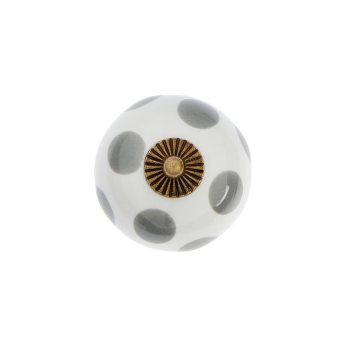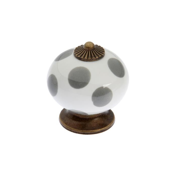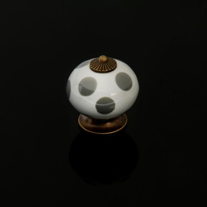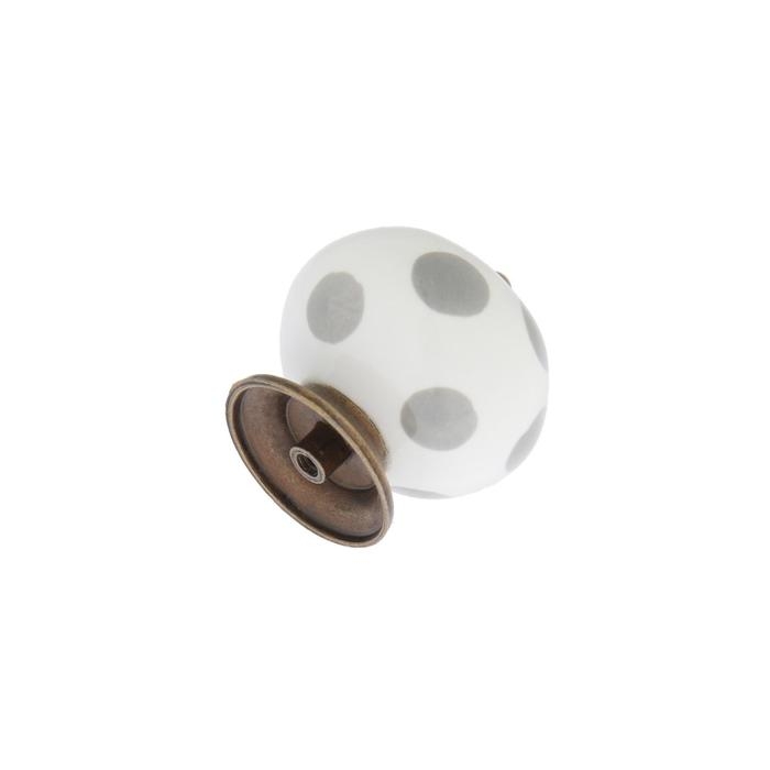 Ручка кнопка ТУНДРА, керамическая, цвет белый с серыми кругами
