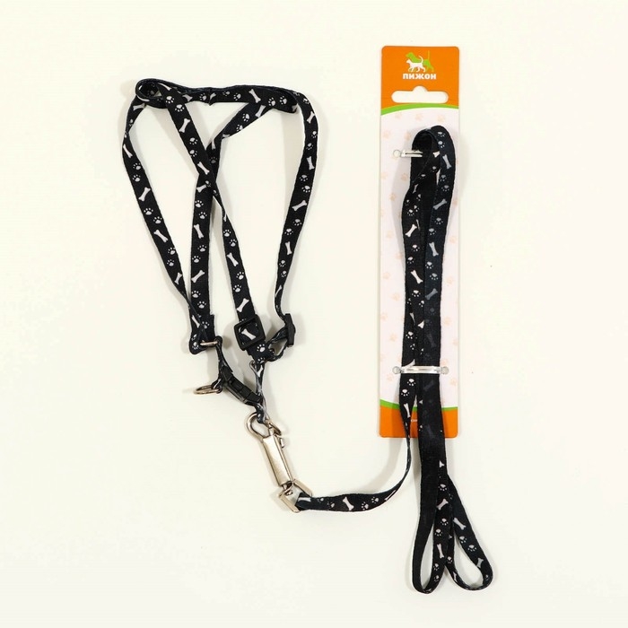 Комплект "Классика", капрон, ширина 1 см, шлейка 28-47 см, поводок 120 см, чёрный