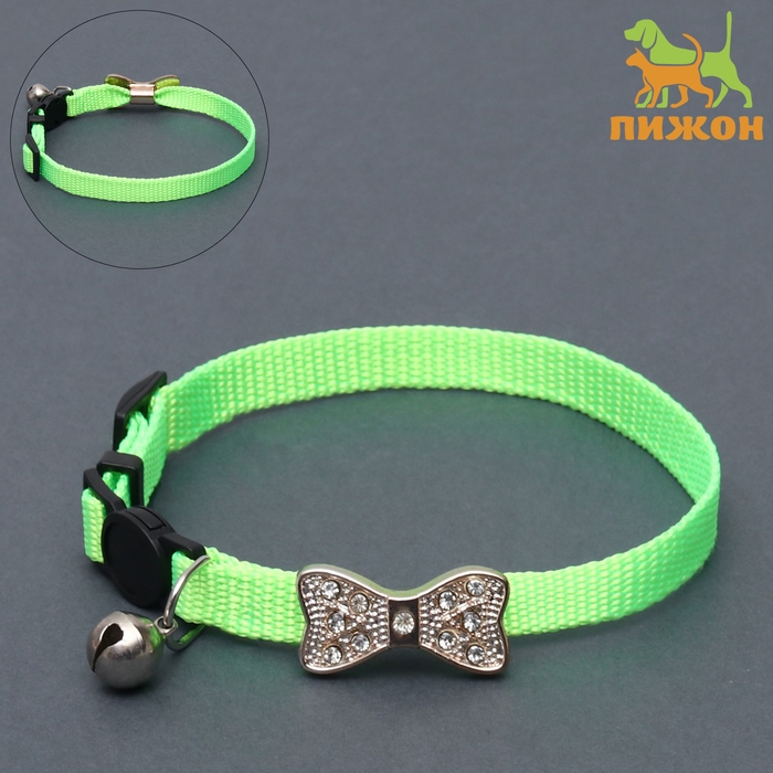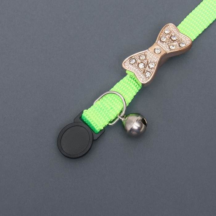 Ошейник кошачий "Бантик" со стразами, 30 х 1 см, салатовый