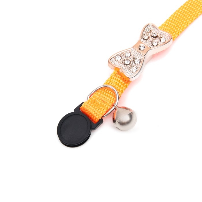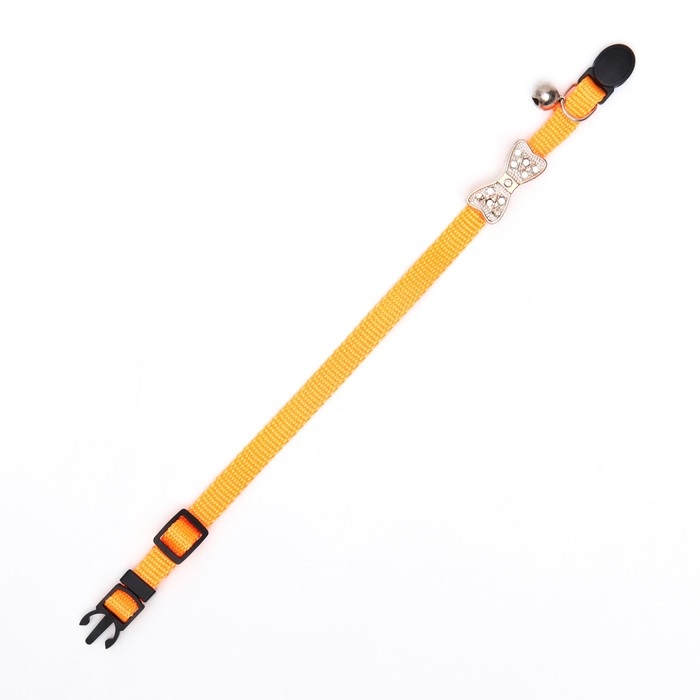 Ошейник кошачий "Бантик" со стразами, 30 х 1 см, оранжевый