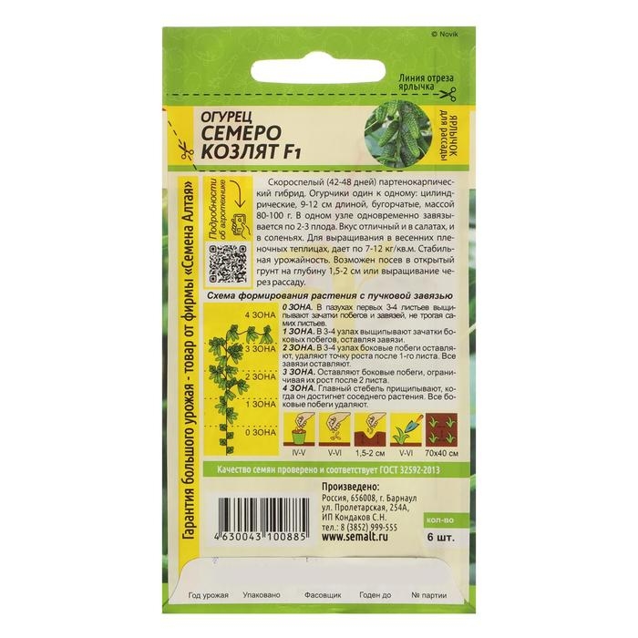 Семена Огурец "Семеро Козлят", F1, Сем. Алт, ц/п, 5 шт