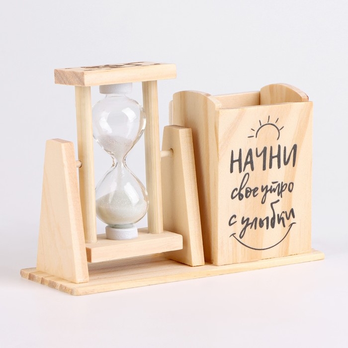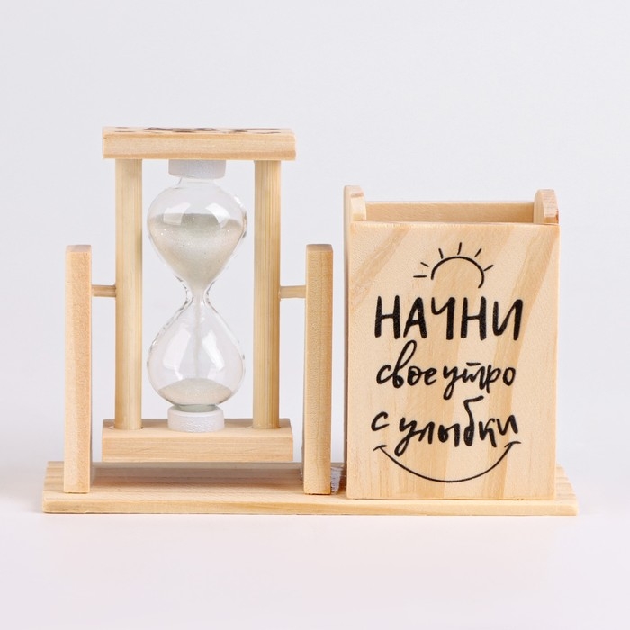 Песочные часы — органайзер "Начни своё утро с улыбки" для канцелярии, 13.5 х 9.5 х 5 см