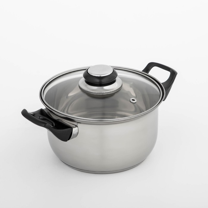 Кастрюля из нержавеющей стали Доляна «Чёрная ночь», 1,5 л, с крышкой