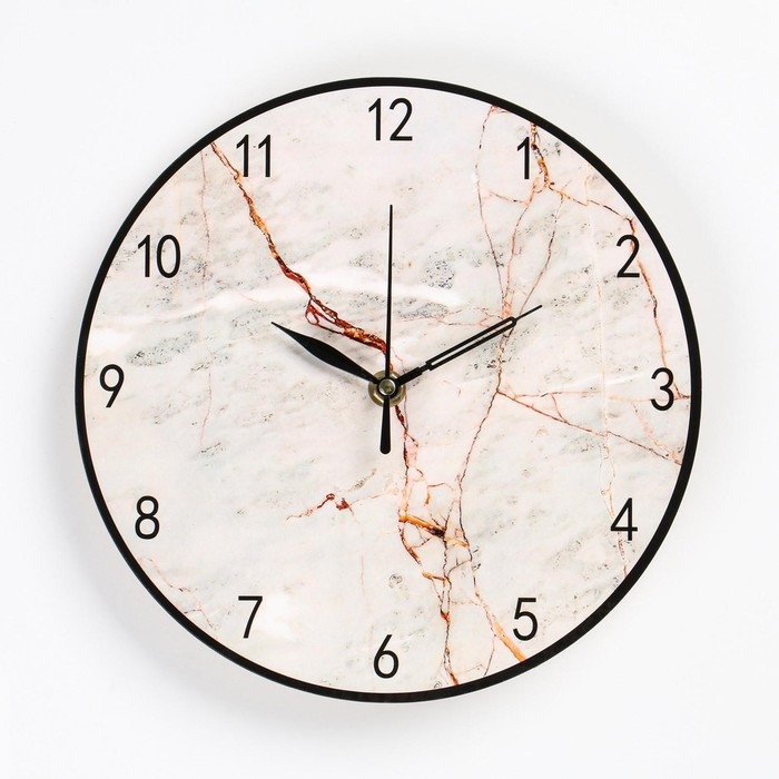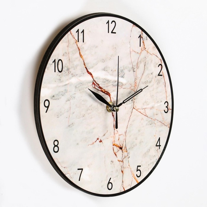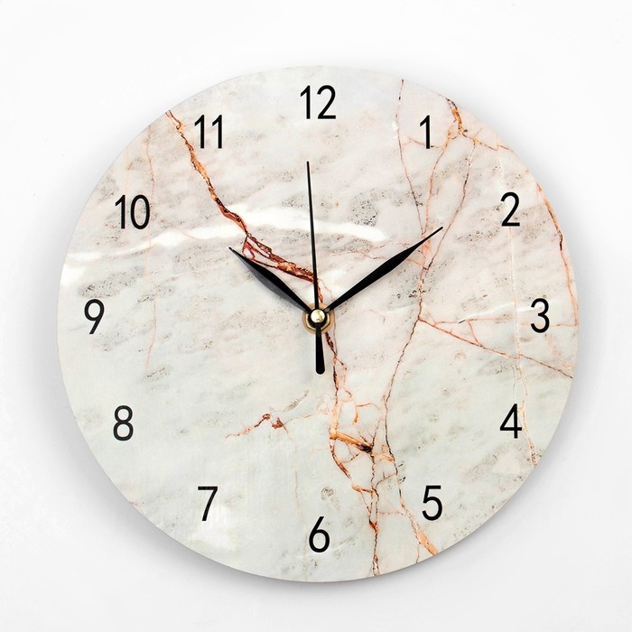 Часы настенные интерьерные"Белый мрамор", d-25 см, бесшумные