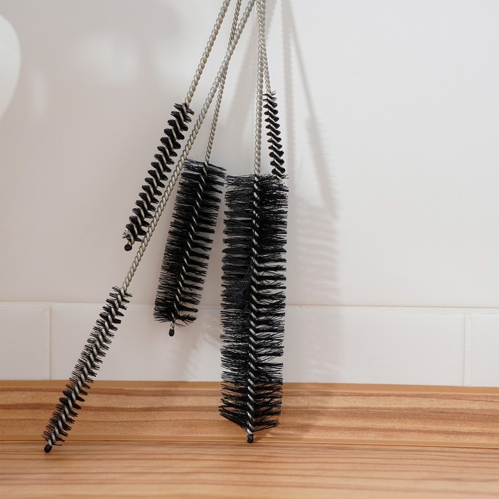 - Кухонные ёршики подходят для мытья посуды, банок, колб кальянов, ваз, кувшинов, чайников, бутылок, термосов, стаканов, графинов и прочей глубокой посуды с узким горлышком.
