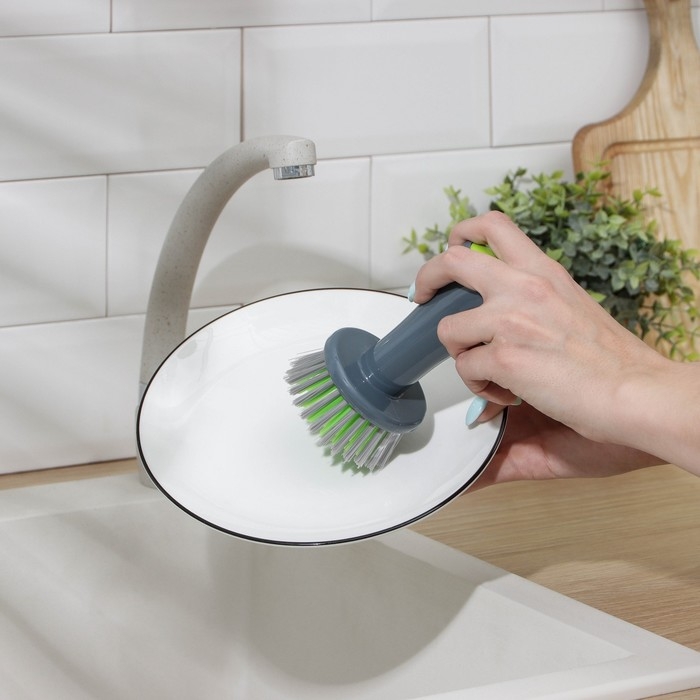 Щётка с дозатором для моющего средства Доляна, цвет синий