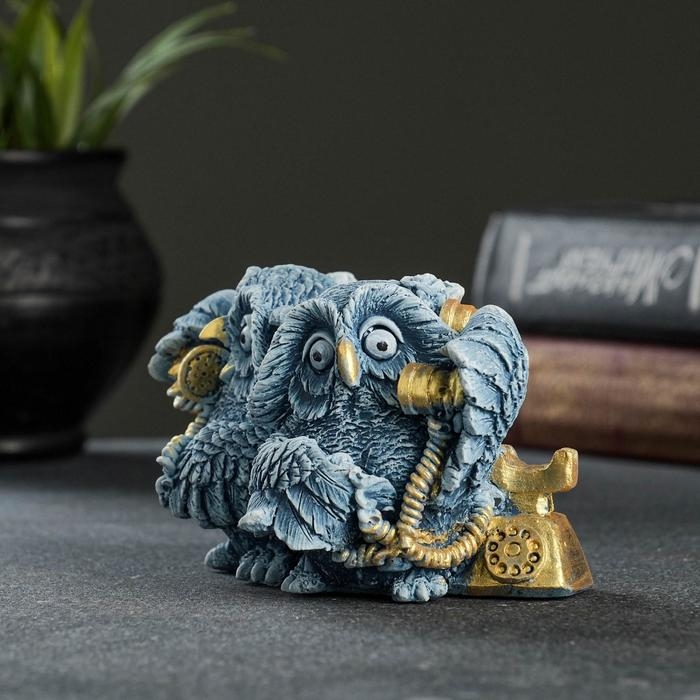 Фигура "Совы говорят по телефону" серая 8х8х12см