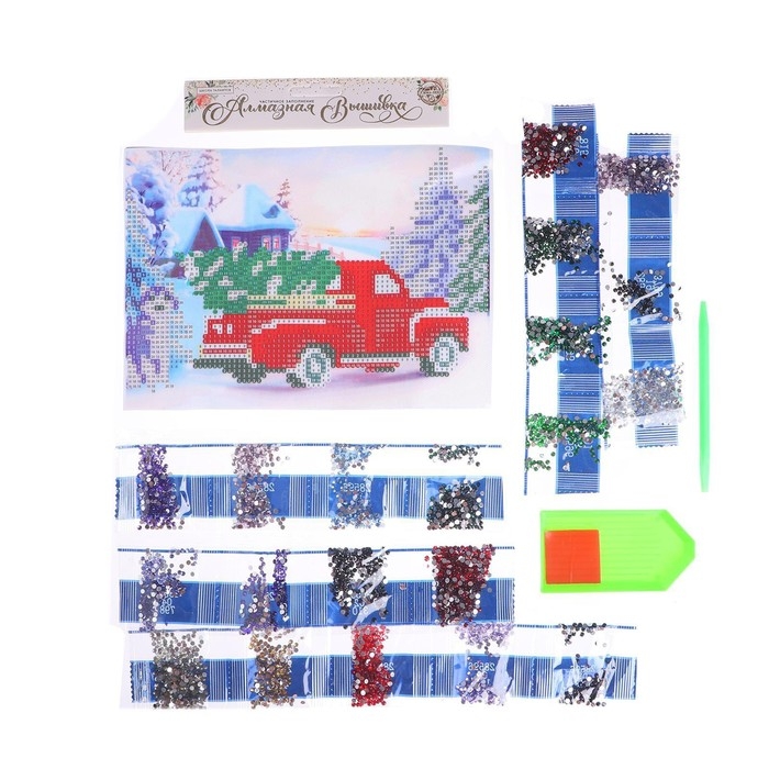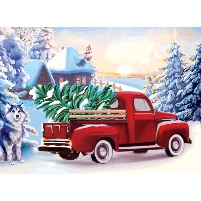 Алмазная мозаика на новый год с частичным заполнением на холсте «Грузовичок», 15 х 21 см, новогодний набор для творчества