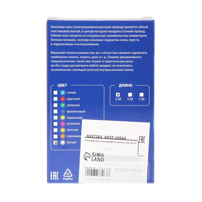 Неоновая нить Cartage для подсветки салона, адаптер питания 12 В, 2 м, белый
