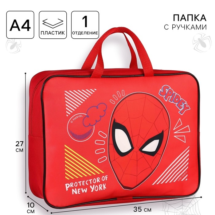 Папка с ручками текстильная А4, 350х270х100 мм, Человек-паук