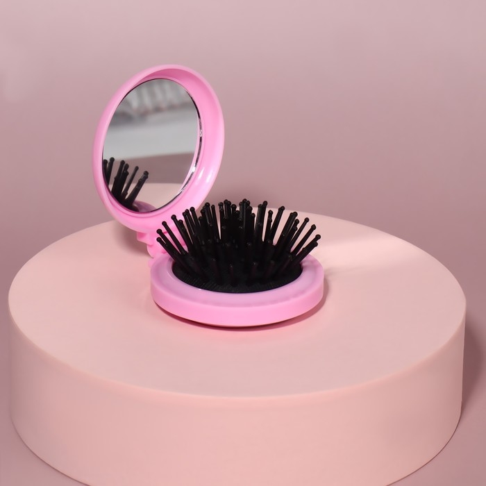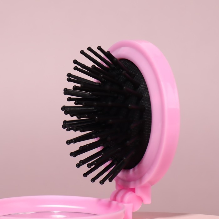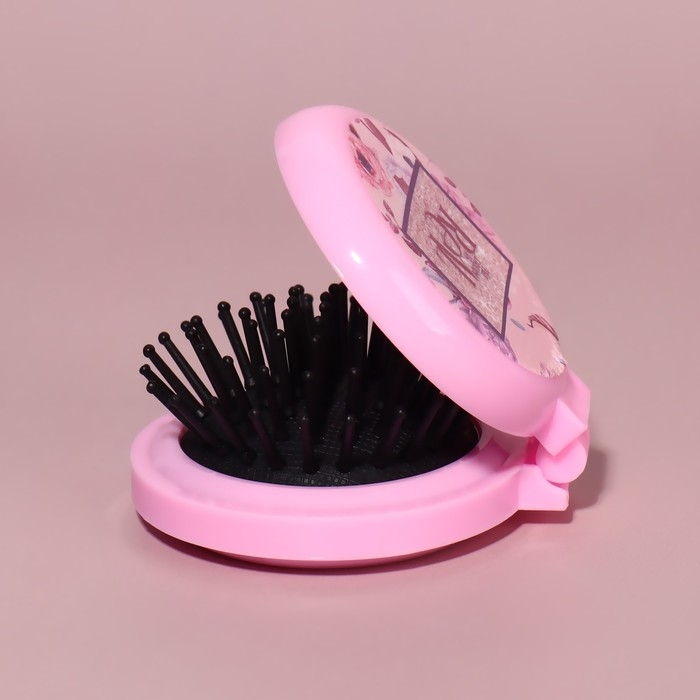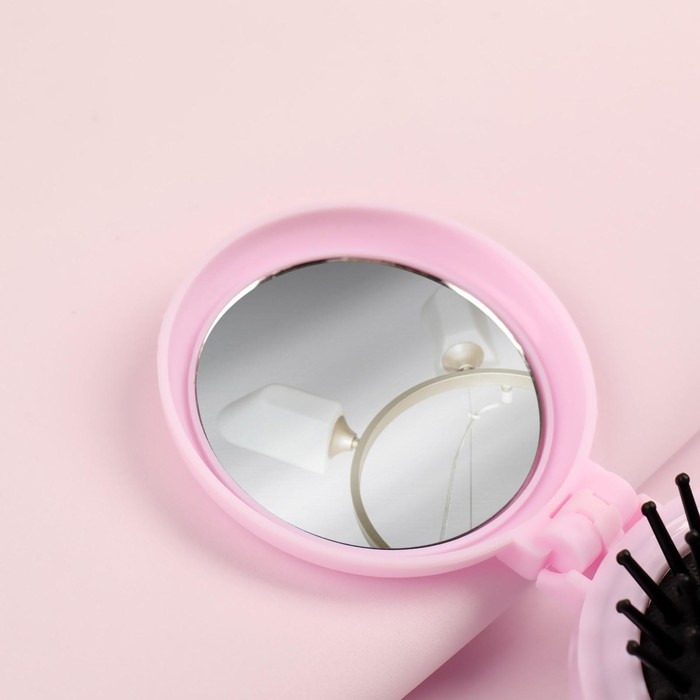 Расчёска массажная, складная, с зеркалом, d = 6,5 см, рисунок МИКС