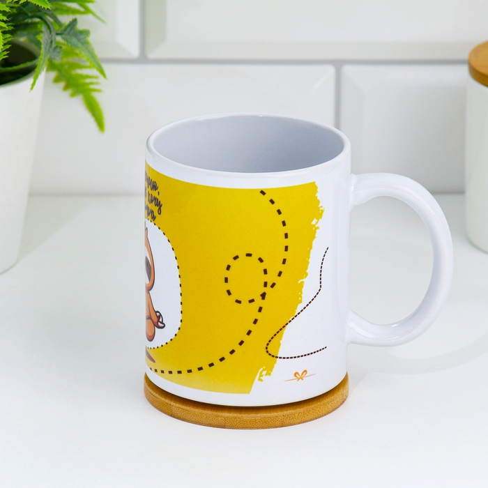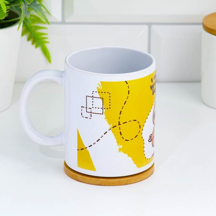 Кружка изготовлена из керамики. Рисунок нанесён методом сублимации, при котором краска проникает в верхний слой изделия, поэтому изображение получается стойким.