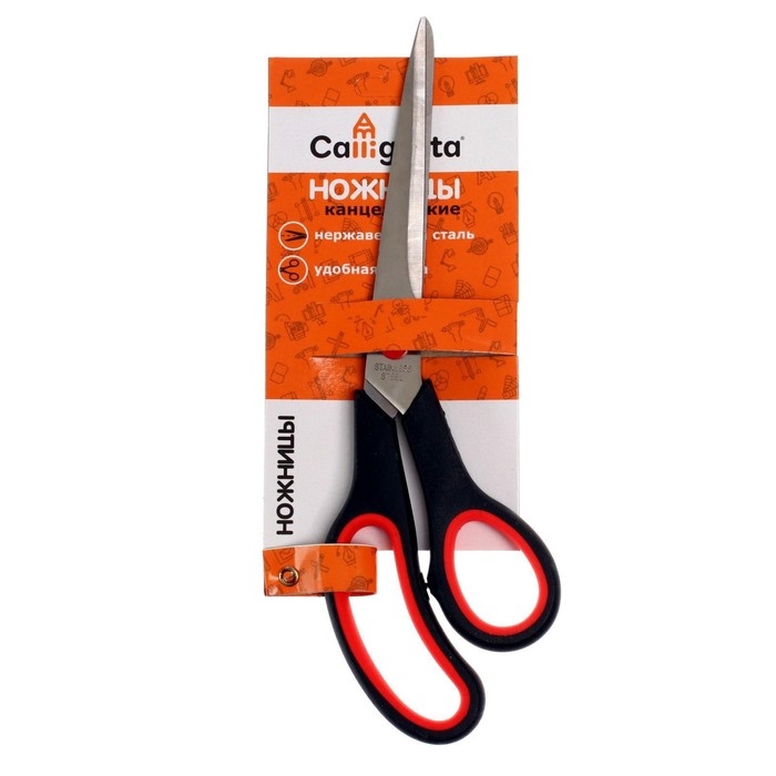 Ножницы канцелярские 25 см, ручки пластиковые с резиновыми вставками