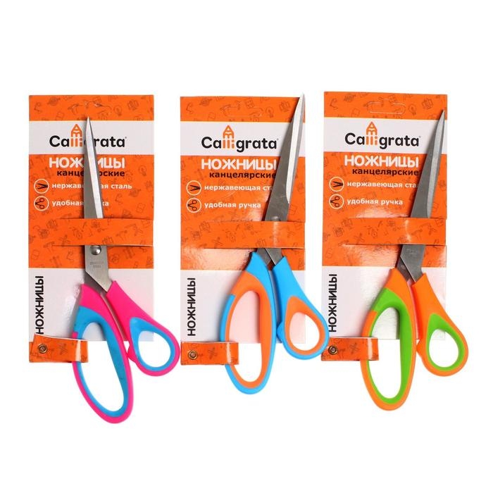 Ножницы канцелярские 21 см, ручки пластиковые с резиновыми вставками, МИКС