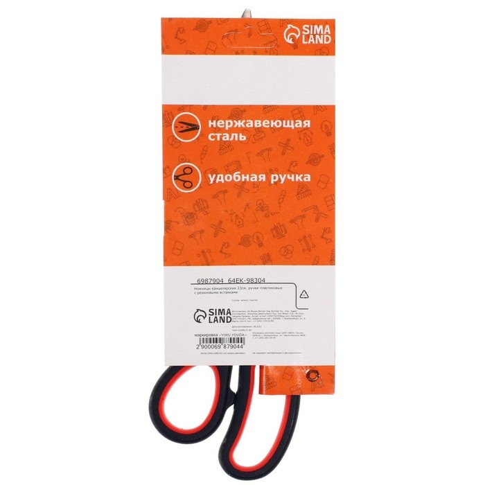 Ножницы канцелярские 23 см, ручки пластиковые с резиновыми вставками