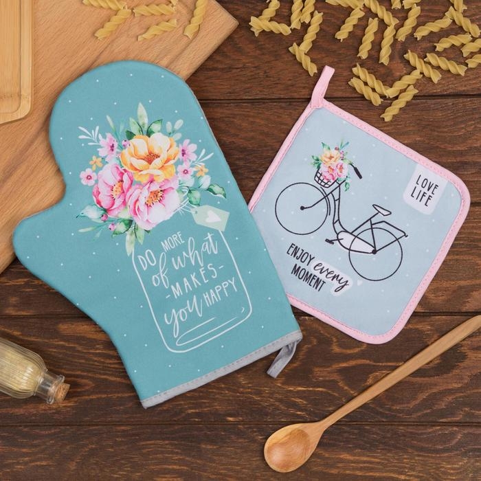 Набор кухонный «Цветочное настроение» варежка-прихватка 20х28см, прихватка 17х17см, 35% х/л,65%
