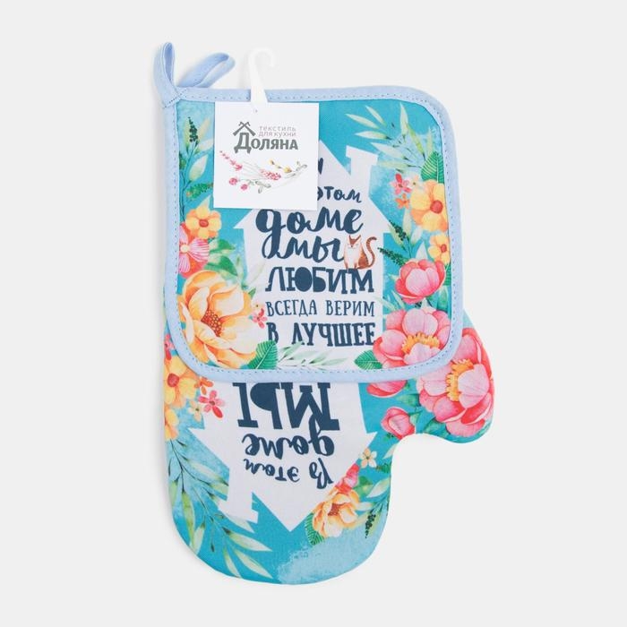 Набор кухонный «Любимый дом» варежка-прихватка 20х28см, прихватка 17х17см, 35% х/л,65% п/э