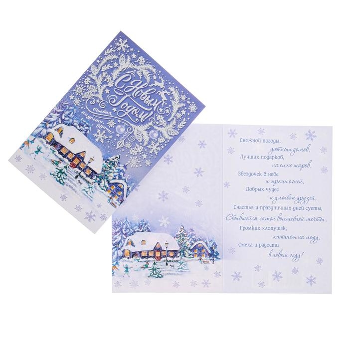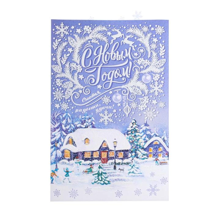 Открытка "С Новым Годом!" глиттер, конгрев, пластизоль, дома