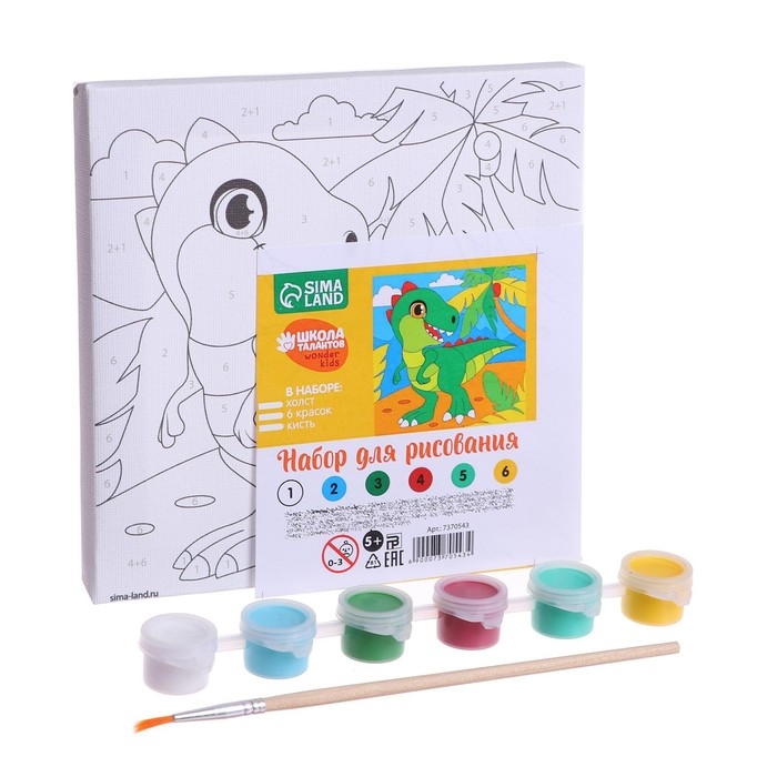 Картина по номерам для детей «Дино в тропиках», 15 х 15 см