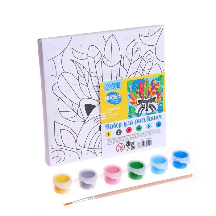 Картина по номерам для детей «Енот в перьях», 15 х 15 см