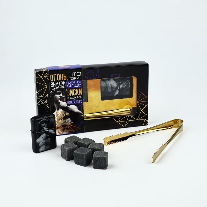 Подарочный набор «Горяч»: камни для виски, зажигалка, щипцы