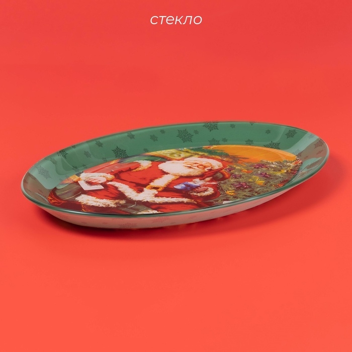 Блюдо стеклянное овальное Доляна «Счастливый Санта», 30×21 см