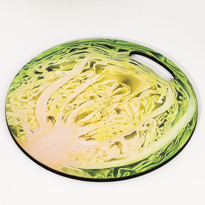 Доска разделочная и сервировочная круглая кухонная "Капуста в разрезе", 25,5 см