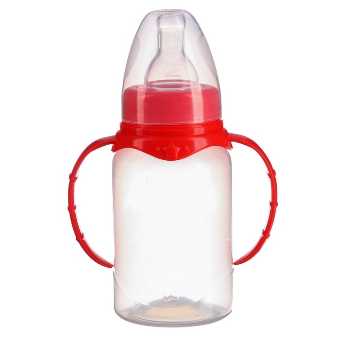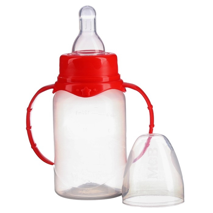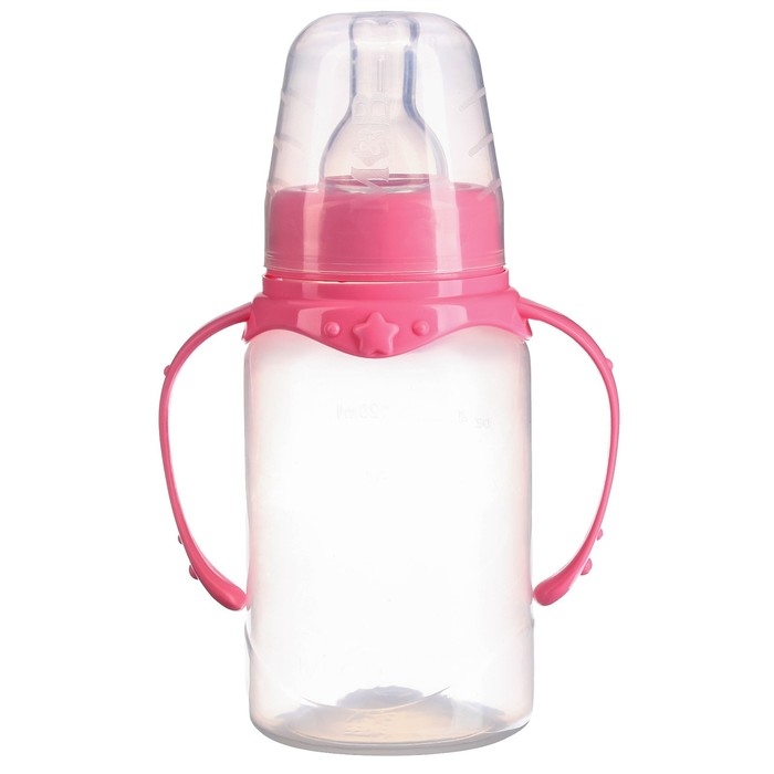 Бутылочка для кормления, классическое горло, 150 мл., от 0 мес., цилиндр, с ручками, цвет МИКС