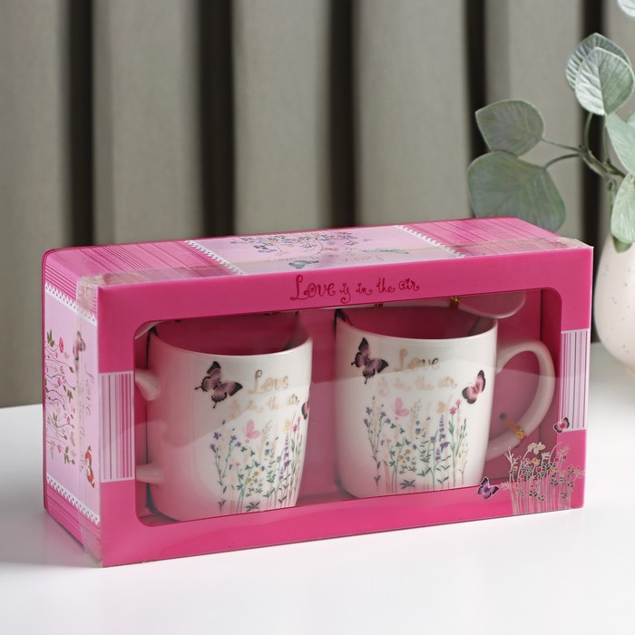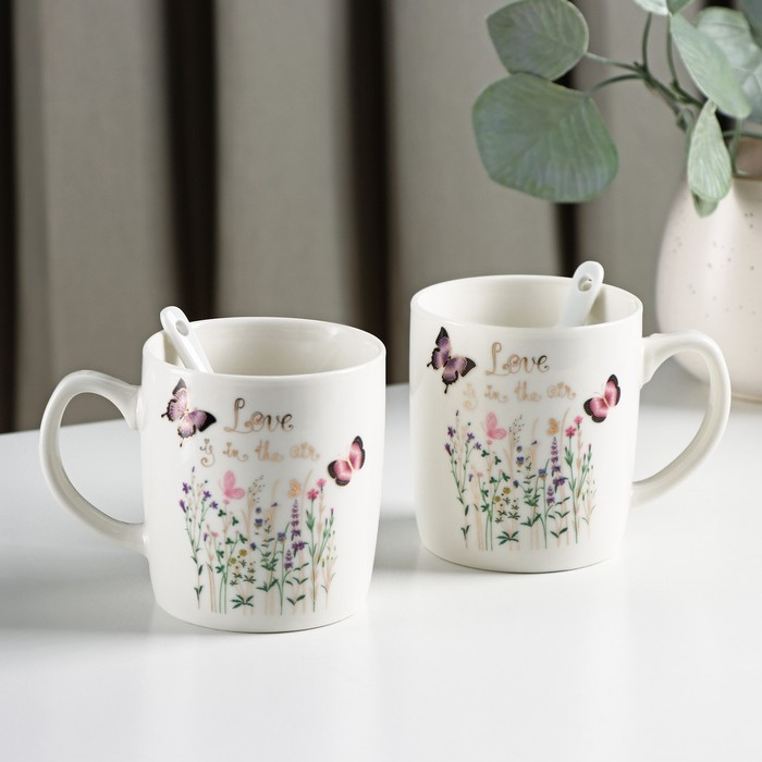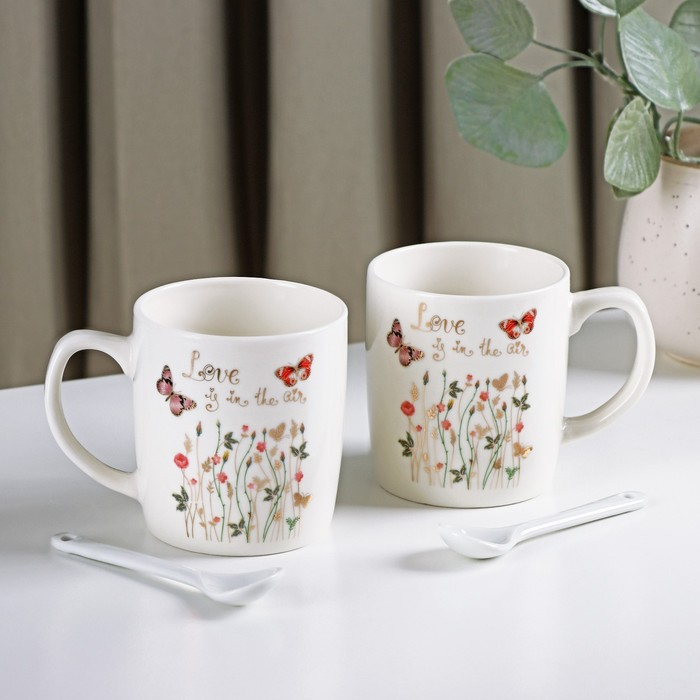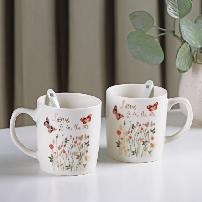 Набор кружек керамических с ложками «Весна», 2 предмета: 200 мл, рисунок МИКС
