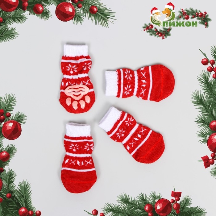 Носки нескользящие "Снежинка", размер L (3,5/5 * 8 см), набор 4 шт, красные