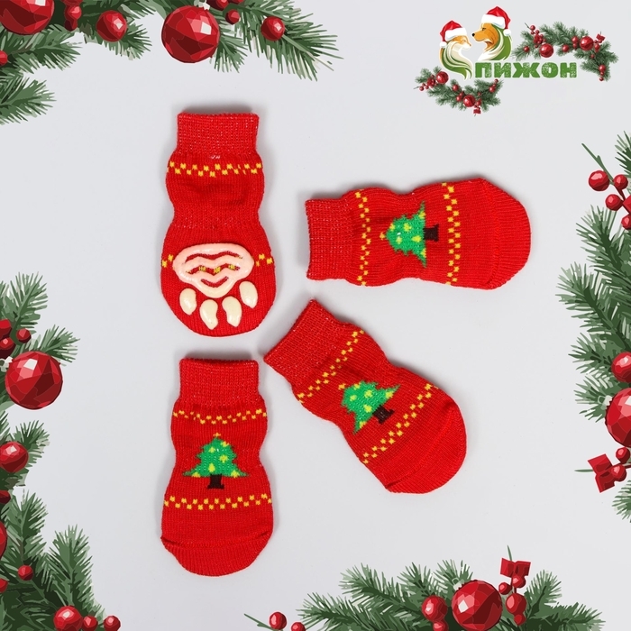 Носки нескользящие "Ёлочки", M (3/4 * 7 см), набор 4 шт