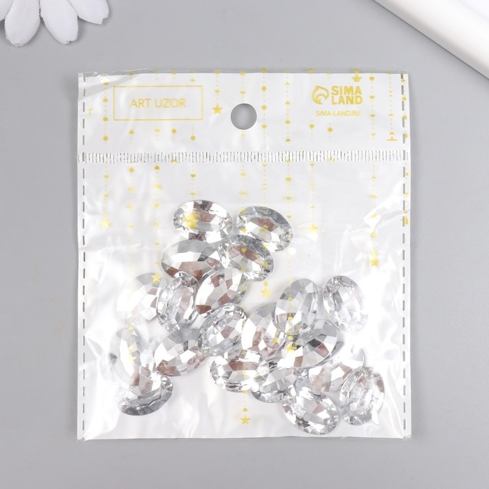 Декор для творчества пластик "Стразы овал. Серебро" набор 20 шт 1,3х1,8 см