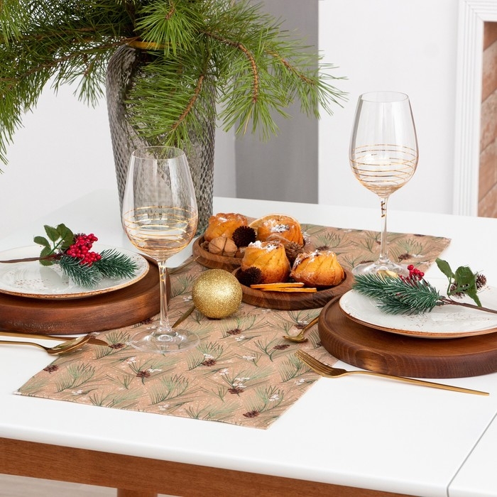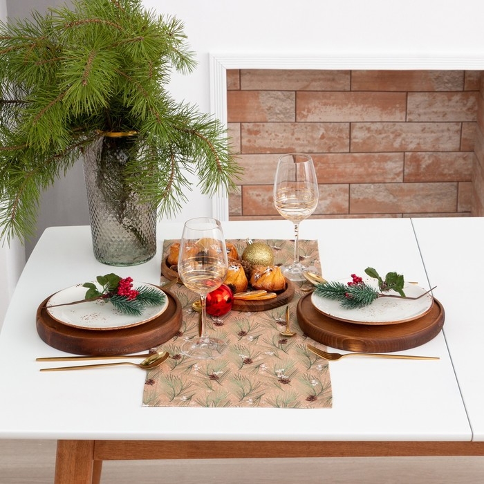 Новый год. Дорожка на стол новогодняя Этель "Spruce branches" 30х70см, 100%хл, саржа 190 г/м2