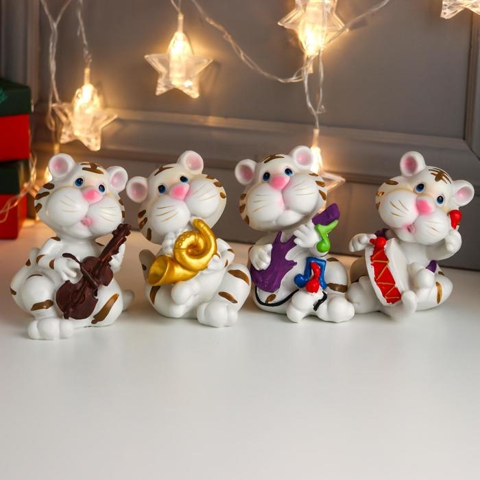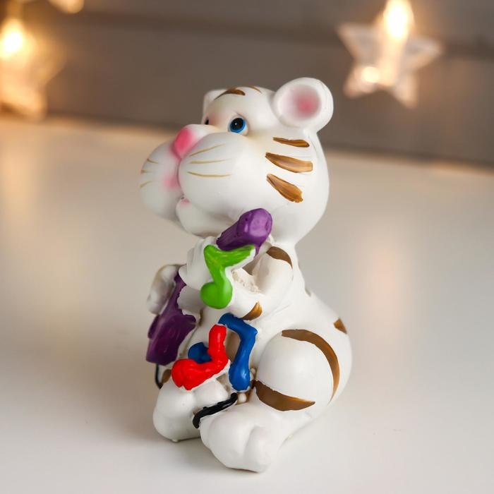 Копилка полистоун "Кремовый тигра - музыкант" МИКС 11,5х7х8,5 см