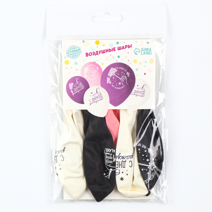 Воздушный шар латексный 12" «С Днём рождения», звёзды, 5 шт.
