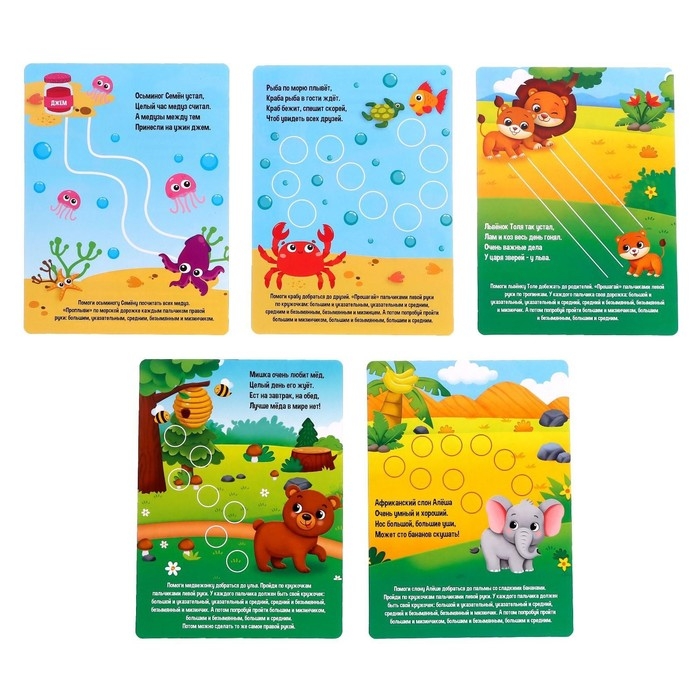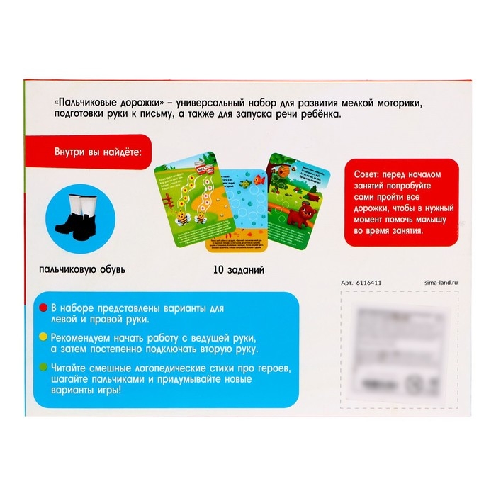 В комплекте: 1 пара пальчиковой обуви и карточки с 10 заданиями.