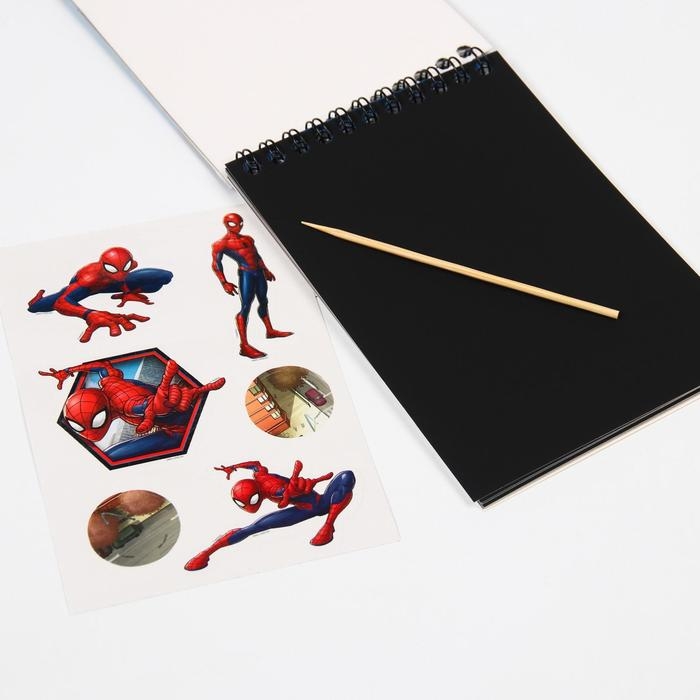Гравюра-блокнот со штихелем, 10 листов, наклейки, Человек-паук